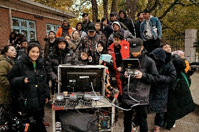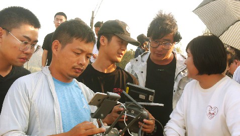志翔航拍飞手张超、云台手黎俊鹏与导演贾玲、摄影指导刘寅